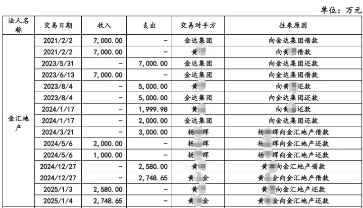 据招股书,金汇地产于2018年5月成立,注册资金1亿元。由于向朝阳市自然资源局购买朝阳学府项目地块需要支付土地出让金,于2021年1月28日和2月2日分别向股东金达集团和朝阳久泰电力设备有限公司实控人爱人黄某各借入资金7,000万元。2023年5月31日,金汇地产归还金达集团7,000万元;2023年6月13日、14日,为保证各股东等比例借入借出,金达集团退回上述归还款项7,000万元。2023年8月4日和2024年1月17日,金汇地产合计向金达集团归还7,000万元。截至报告期末,金汇地产向上述股东及其关联方的借款余额为0元。