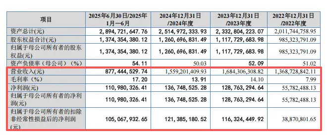 业绩方面,2022-2025年上半年,金钛股份营收分别为13.69亿元、16.84亿元、15.59亿元、8.77亿元;归母净利润分别为5578万元、1.29亿元、1.37亿元、1.11亿元。
